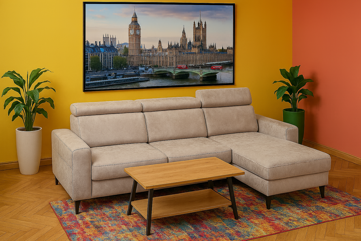 - moderní komponentová sedací souprava s úložným prostorem a možností volby rozkladu na lůžko 210 x 118 cm.