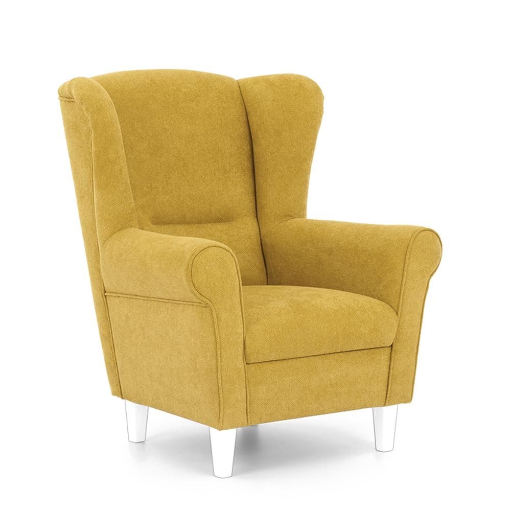 UŠÁK JIM - je pohodlné čalouněné křeslo v retro provedení na masivní dřevěné podnoži, kterou lze namořit do všech barevných odstínů REA STANDARD. Potahové látky lze vybírat ze vzorníku AVA.