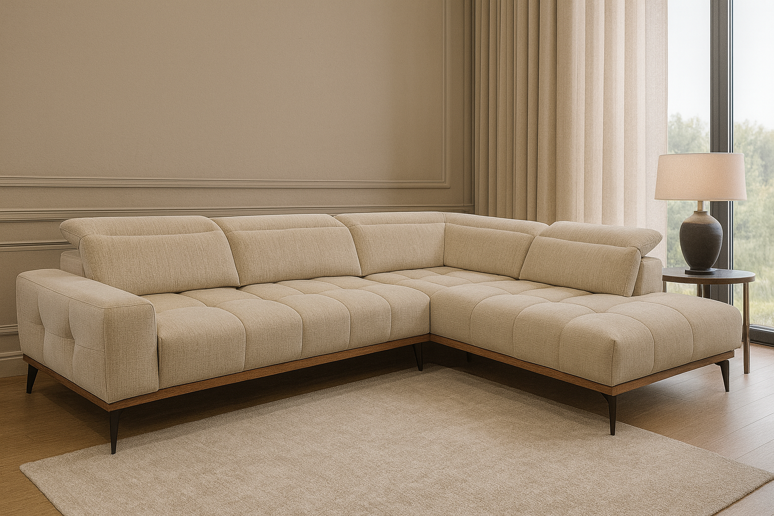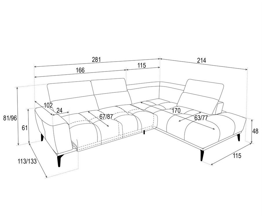 - je luxusní pohodlná sedací souprava s možností elektrického zvětšení hloubky sedu o 20 cm na hlavní sedací části a zvětšení hloubky sedu o 14 cm na kratším rohu. Masivní ozdobný Dubový rám.