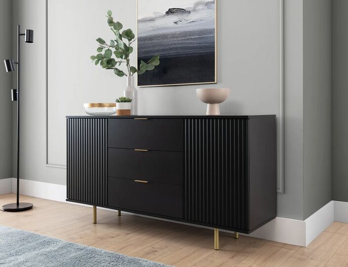 - je moderní komoda vyrobena z kvalitního lamina v dekoru Černý mat nebo Kašmír . Komodu lze kombinovat s nábytkem s modelové řady Nubi