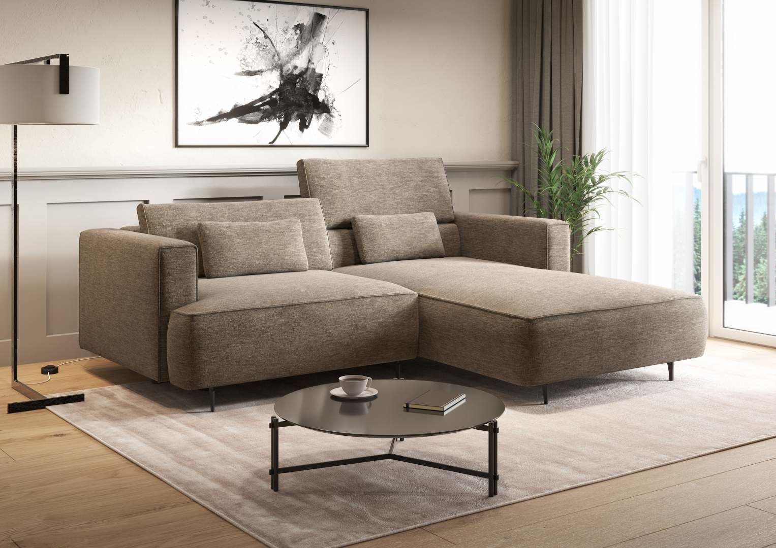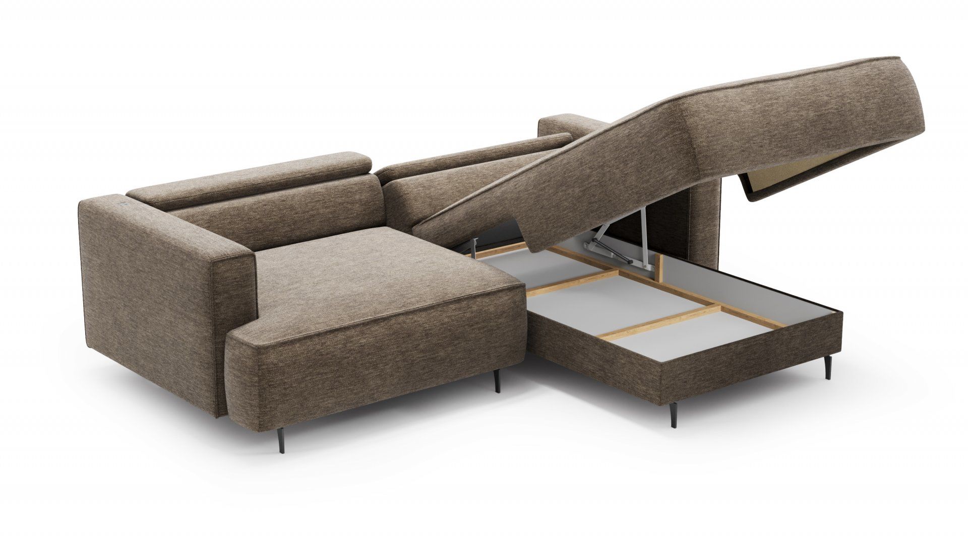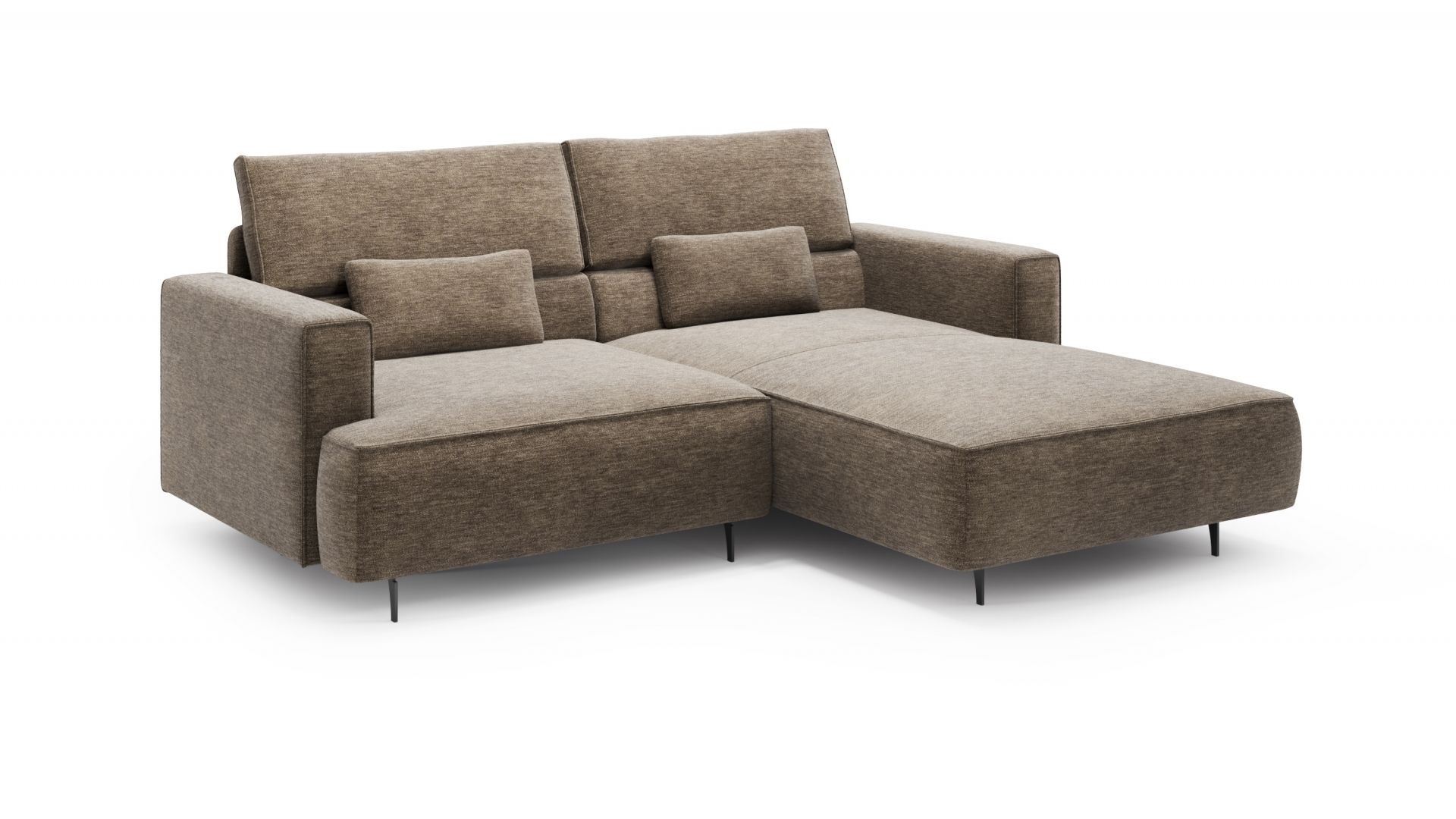 Sedací souprava KENZA - moderní, pohodlná sedací souprava s rozkladem na lůžko na trvalé spaní 150 x 201 cm. Velký výběr potahových látek včetně omyvatelných. Sedací souprava má zabudovaný panel s USB portem a výběr ze dvou barev nohou.
