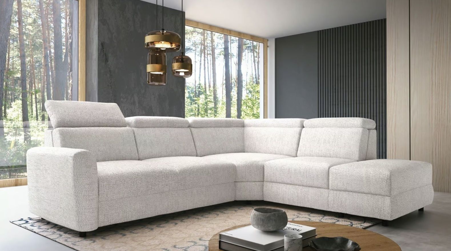 Sedací souprava EMOND - moderní pohodlná sedací souprava se zabudovaným USB portem v rohovém modulu a možností úložného prostoru v podobě výsuvného šuplíku a s možností výklopného úložného prostoru i v otevřeném koncovém modulu.