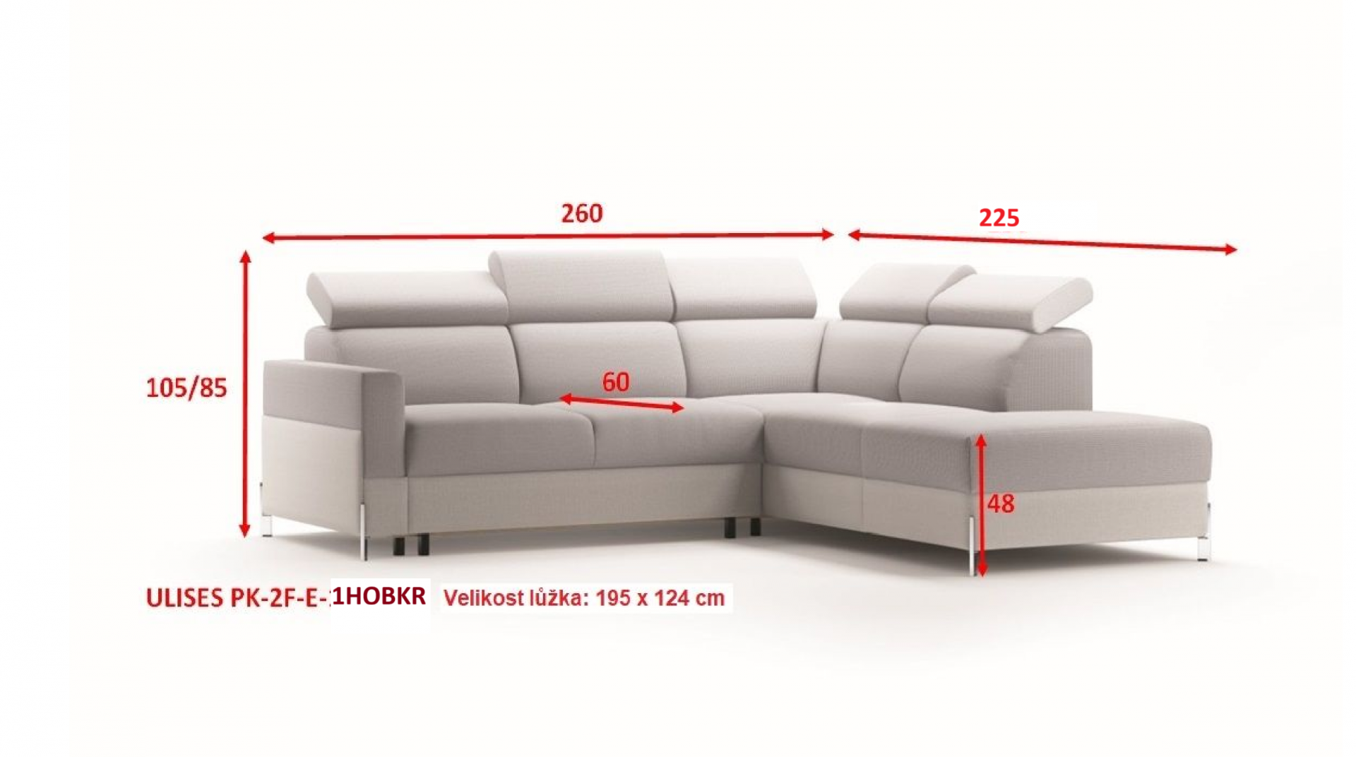 Sedací souprava ULISE je originální, pohodlná a vysoce kvalitně zpracovaná moderní sedací souprava, která zaujme svým neobyčejným designem. Tato rohová sedací souprava je ideální na vytvoření stylového interiéru. Majitelé těchto sedaček u nich ocení zejména jejich výbornou kvalitní povrchovou úpravu a velké pohodlí při posezení, jelikož její výplň je kombinace vysoce kvalitní HR PUR pěny a duální bonelovo - falistové pružiny s čalounickými popruhy, které zaručují vysoký komfort sezení. Masivní boční opěrky umožňují pohodlné podložení rukou či hlavy. Kostra je vyrobena z měkkého a tvrdého dřeva. Sedačka je celo čalouněná a záda sedací soupravy jsou také očalouněné v originální látce. K sedačce náleží velký výběr potahových látek a tyto látky lze kombinovat anebo objednat celou sedací soupravu v jedné barvě. Vybrané potahové látky uveďte při objednávce do poznámky, popřípadě nás kontaktujte. Provedení opěráku sedací soupravy je vysoké, čímž je zaručeno pohodlné sezení.